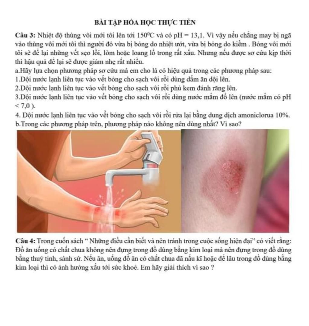 Nếu chẳng may bị ngã vào thùng vôi mới tôi thì người đó vừa bị bỏng do nhiệt ướt, vừa bị bỏng do kiềm.