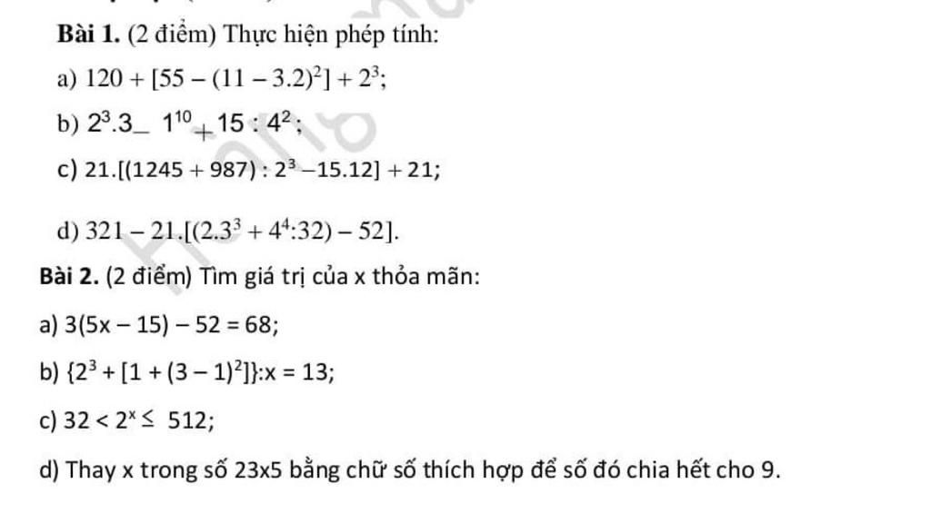 Bài 1. (2 điểm) Thực hiện phép tính: