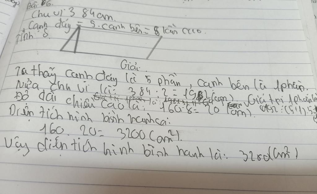 Vì độ dài cạnh đáy bằng $5$ lần cạnh kia nên cạnh đáy là:
