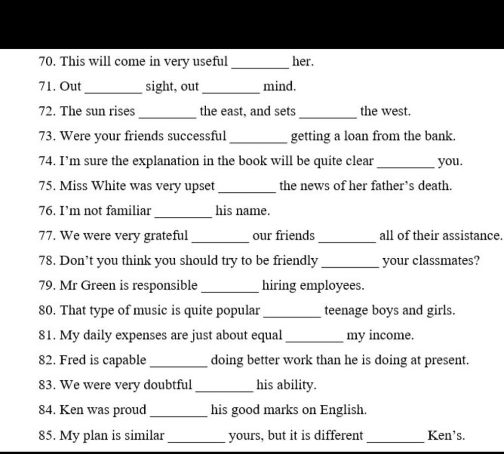 85. to (tobe similiar to: giống với)- from (tobe different from: khác với)
