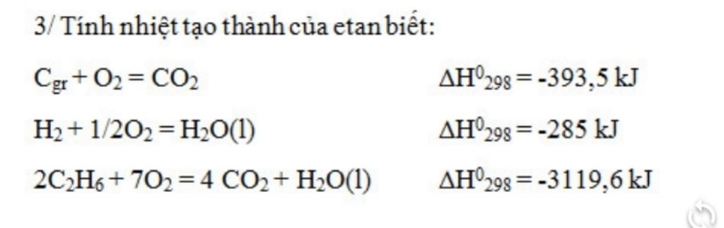 $(3): 2C_2H_6+7O_2\to 4CO_2+6H_2O\quad\Delta H^o_{298}=-3119,6(kJ)$