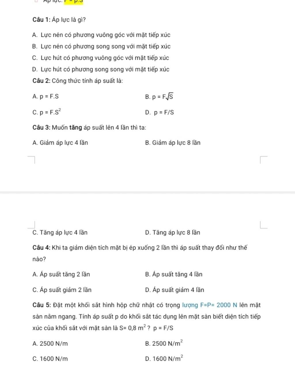 ->khi giảm S tiếp xúc 2 lần thì áp suất tăng 2 lần .