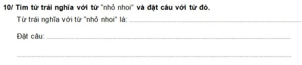 Từ trái nghĩa với từ nhỏ nhoi là $\text{to lớn, khổng lổ, vĩ đại, to, ...}$