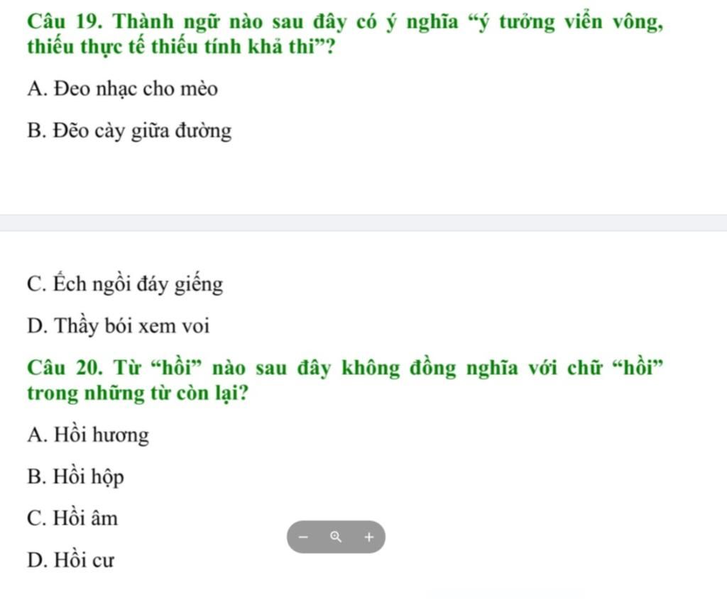 Câu 20: Từ "hồi" ko đồng nghĩa với chữ "hồi" trong những từ còn lại là: