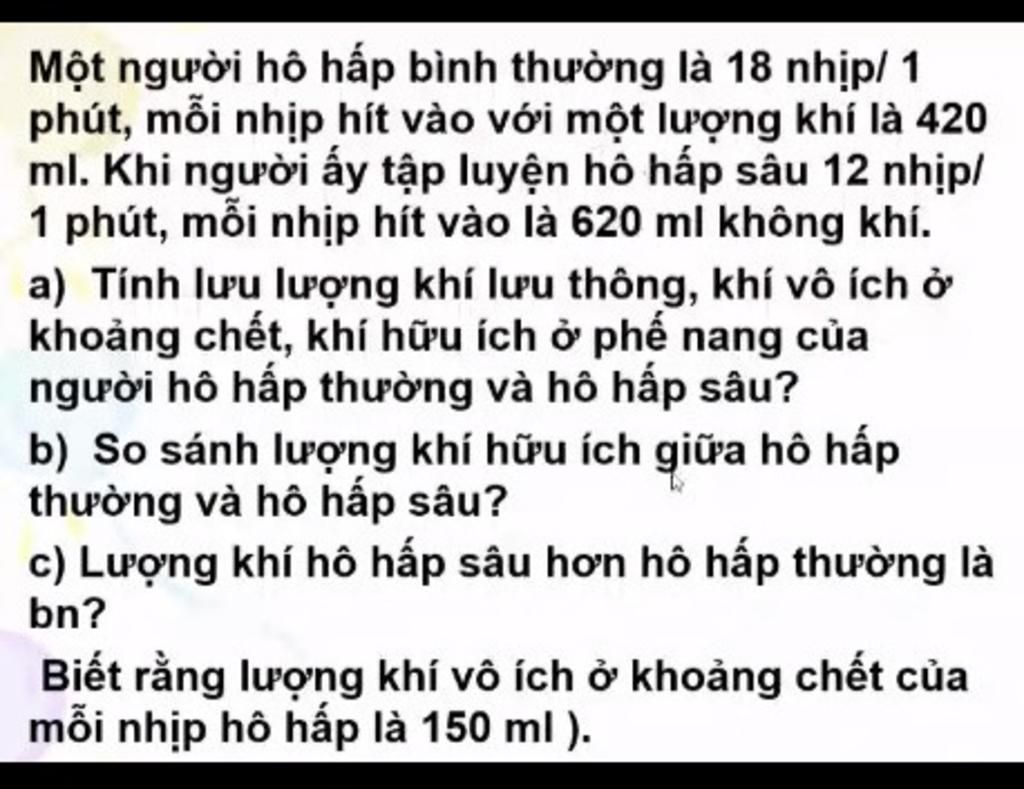 ml. Khi người ấy tập luyện hô hấp sâu 12 nhịp/