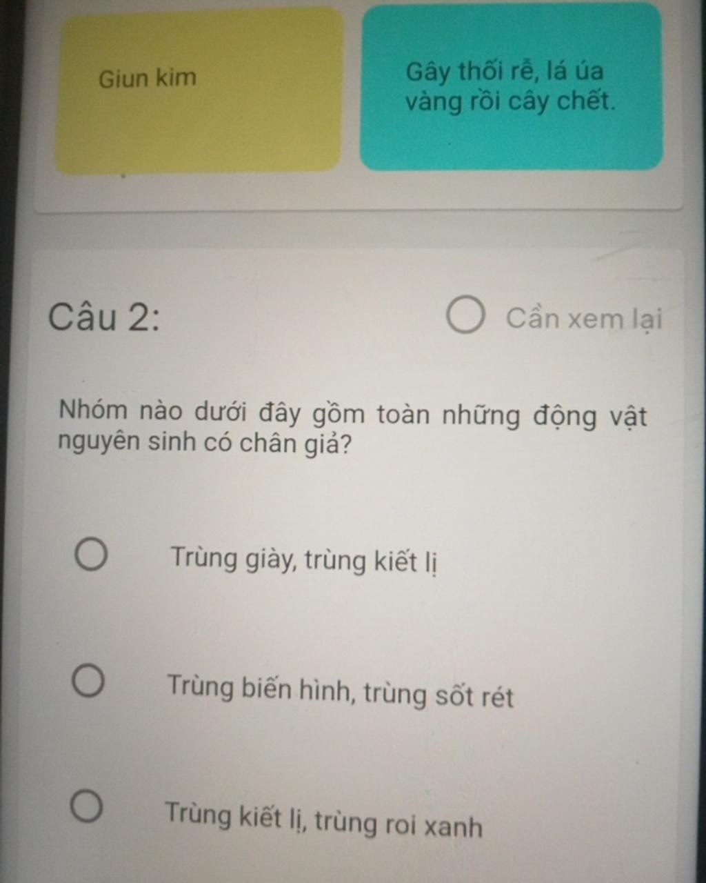 Đáp án: trùng biến hình, trùng sốt rét