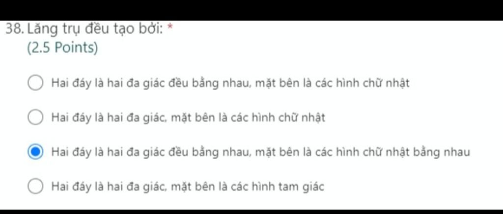 Hai đáy là hai đa giác, mặt bên là các hình chữ nhật