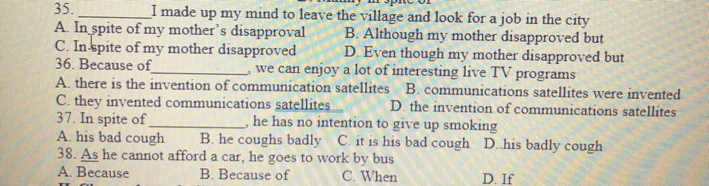 35. A. In spite of my mother's disapproval