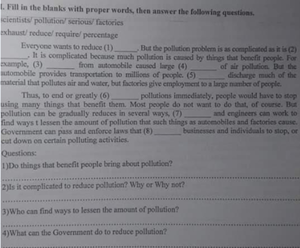 2. The pollution problem is as complicated as it's serious.because much pollution is caused by things that benefit people.