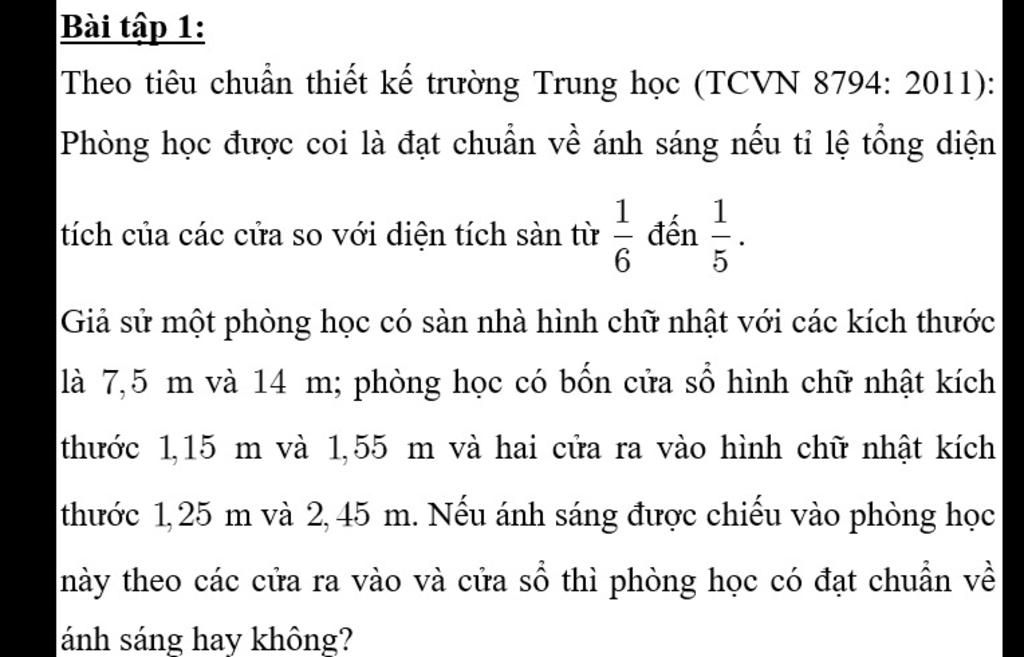 Phòng học được coi là đạt chuẩn về ánh sáng nếu tỉ lệ tổng diện