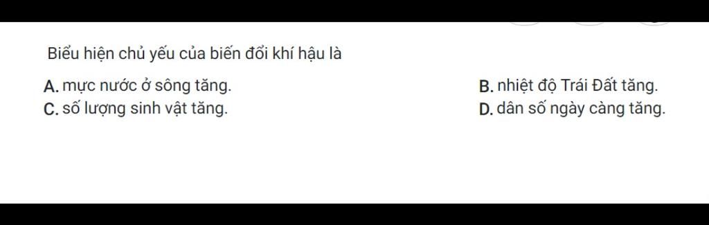 - Biểu hiện như: Nhiệt độ TĐ tăng, mực nước biển dâng và gia tăng hiện tượng khí tượng thủy văn cực đoan.