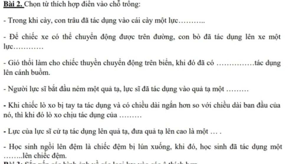 - Trong khi cày, con trâu đã tác dụng vào cái cày một lực không tiếp xúc