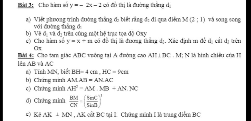 a) Viết phương trình đường thẳng dy biết rằng d; đi qua điểm M (2 ; 1) và song song