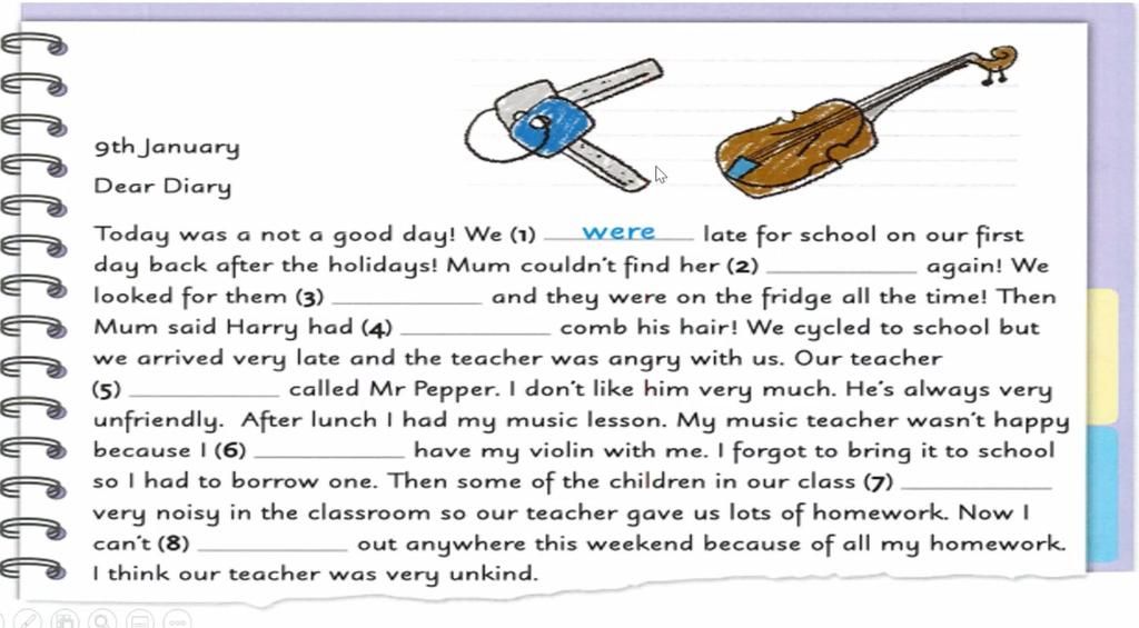 6. Didn’t ( "wasn't happy" = không được vui -> ngữ cảnh là bạn học sinh đã quên mang theo )
