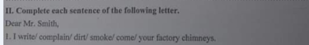 1. I'm writing to complain about the dirt and smoke come from your factory's chimneys