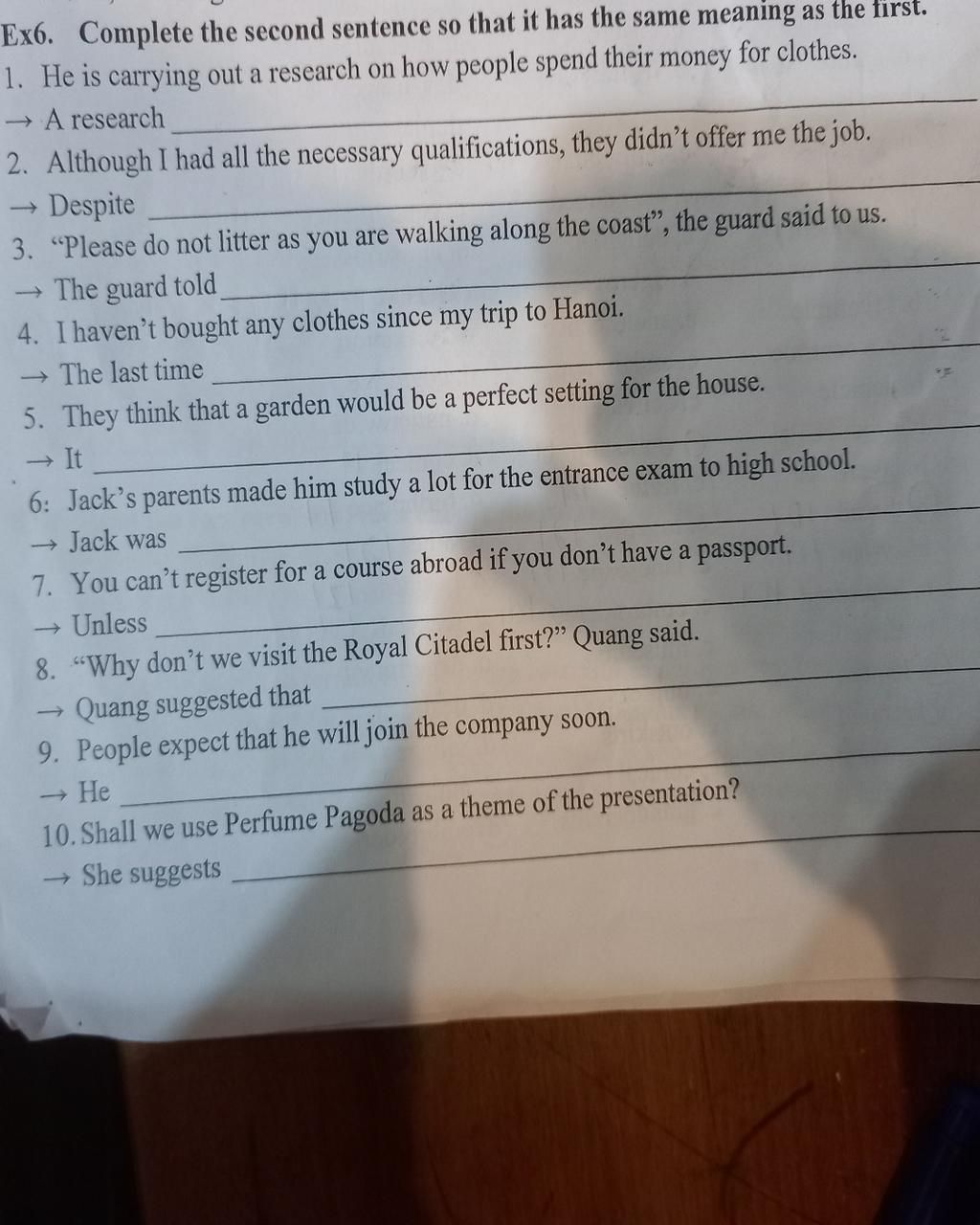 Ex6. Complete the second sentence so that it has the same meaning as the first.