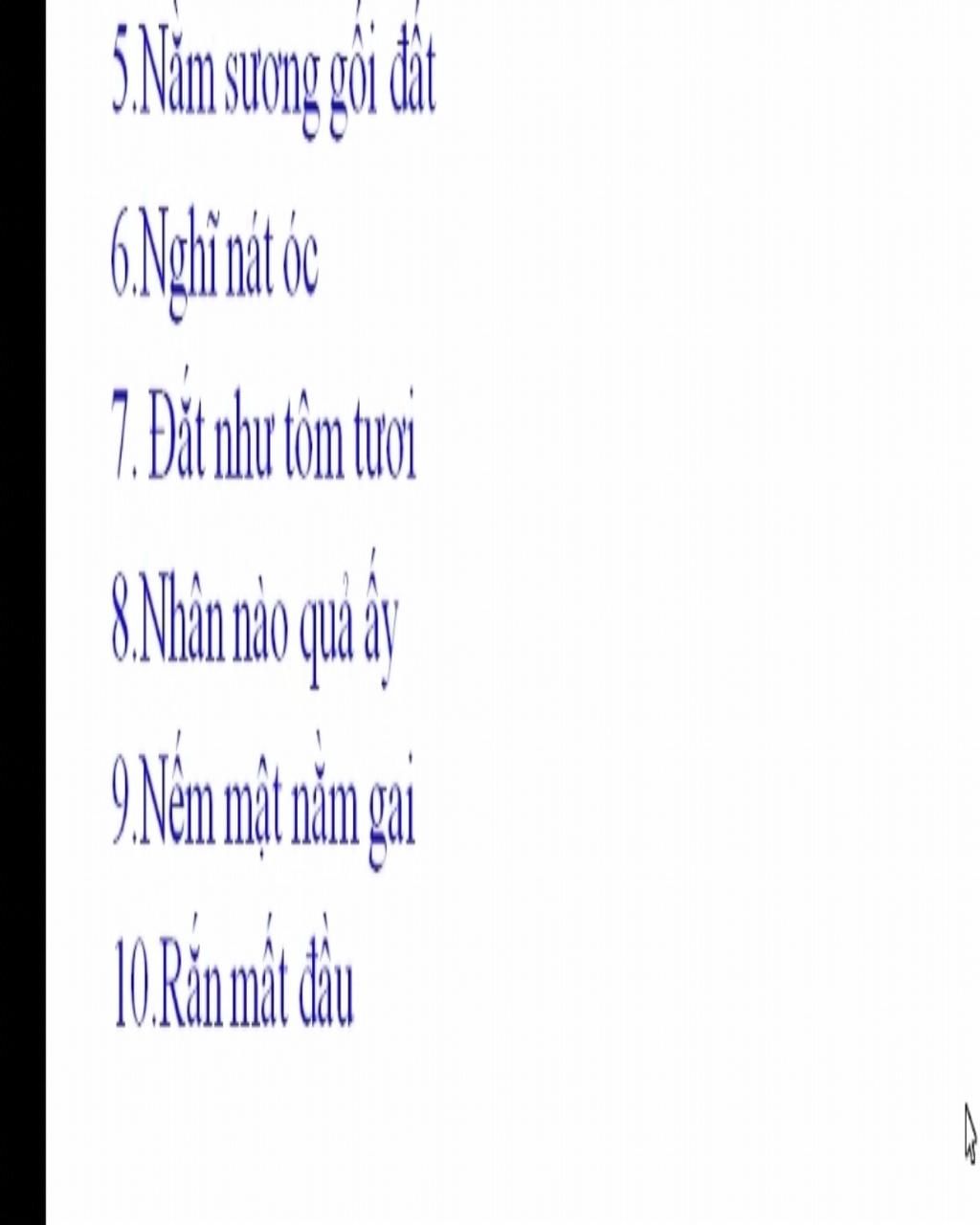 $\text{ 10) nói một tí mà như rắn mất đầu}$