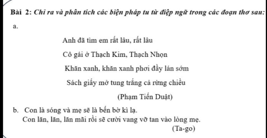 `a)` Biện pháp tu từ: điệp ngữ
