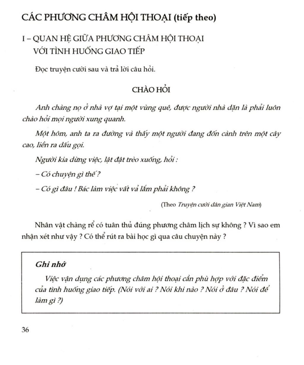 - Phương châm quan hệ: khi giao tiếp, cần nói đúng vào đề tài giao tiếp, tránh nói lạc đề.