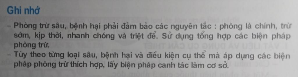Giải thích : Muốn tiến hành phòng trừ sâu , bệnh hại thì phải nhất định đảm bảo được các nguyên tắc cơ bản sau (...) , trong đó có đề cập đến hành vi : Sử dụng tổng hợp các biện pháp phòng trừ