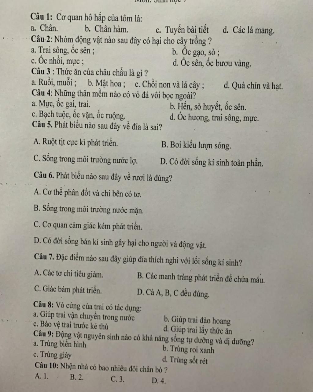 `-> A`. Cơ thể phân đốt và chi bên có tơ.
