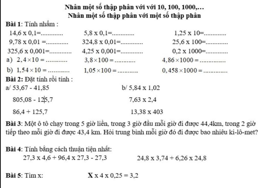 Nhân một số thập phân với một số thập phân