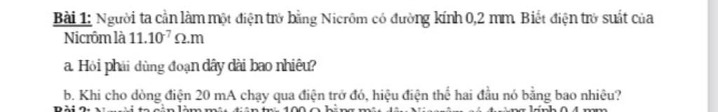 b,Khi cho dòng điện $I=20mA_{}$ chạy qua điện trở đó, hiệu điện thế giữa hai đầu nó là: