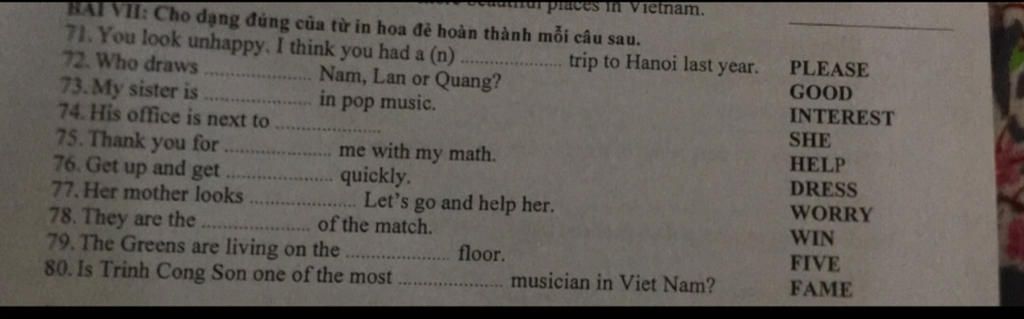77. worried (adj chỉ cảm xúc đuôi -ed dùng cho người)