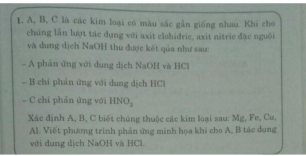 3 kim loại đều tác dụng được với dd HCl ( - Cu không thể tác dụng được với dd HCl )