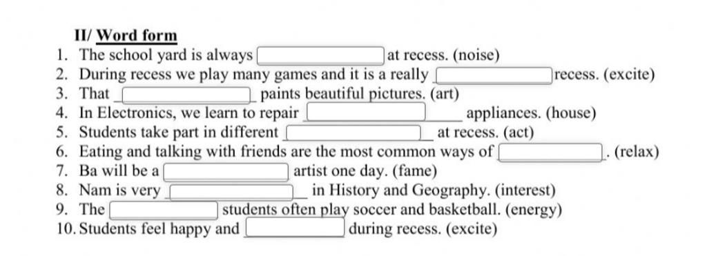 2. exciting (cần tính từ bổ nghĩa cho "recess")