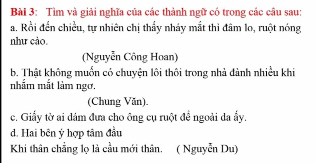 a) Thành ngữ: Ruột nóng như cào.