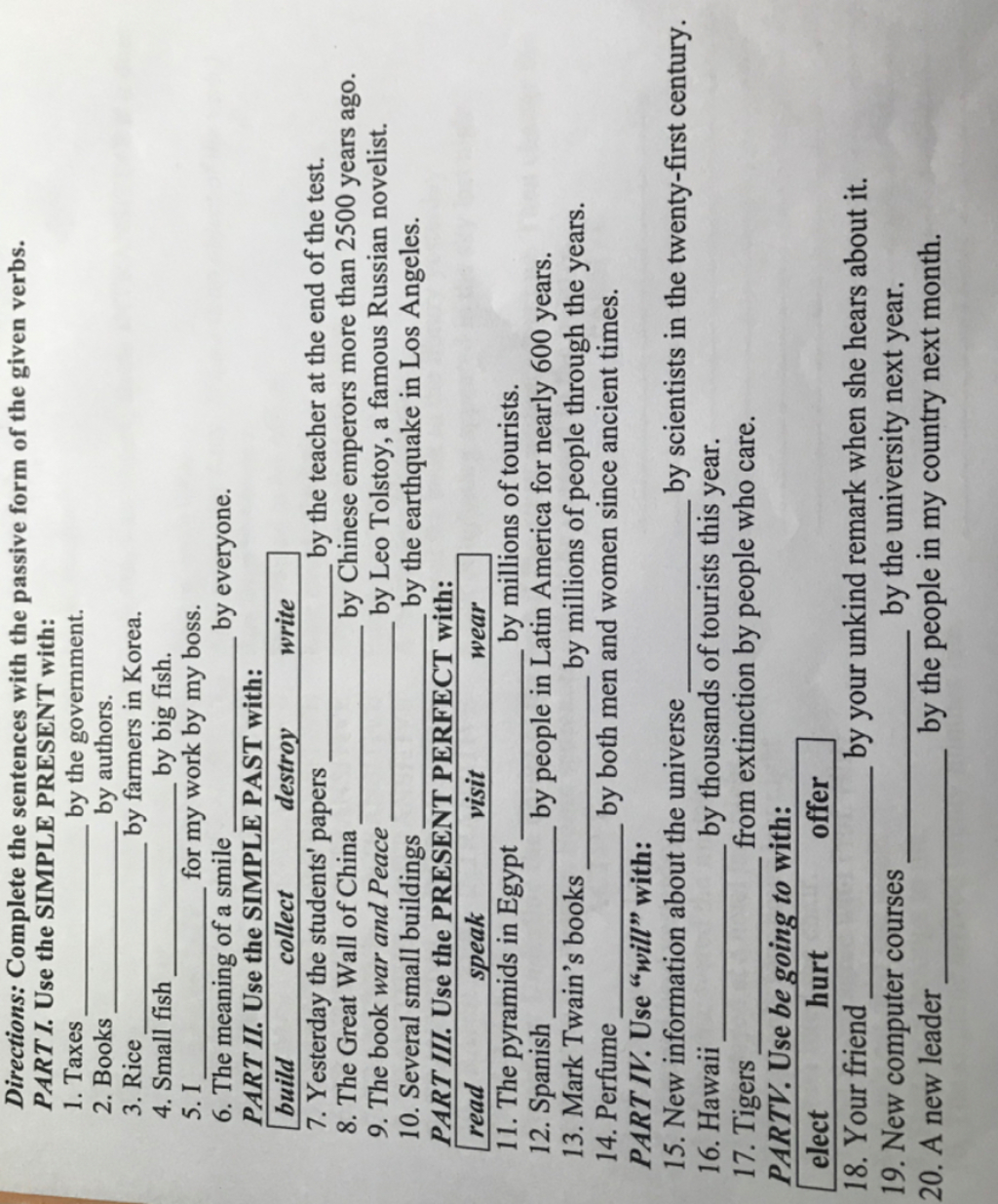=> Các câu này cũng vậy, nếu có động từ V1 thì bạn chuyển sang Vp2.