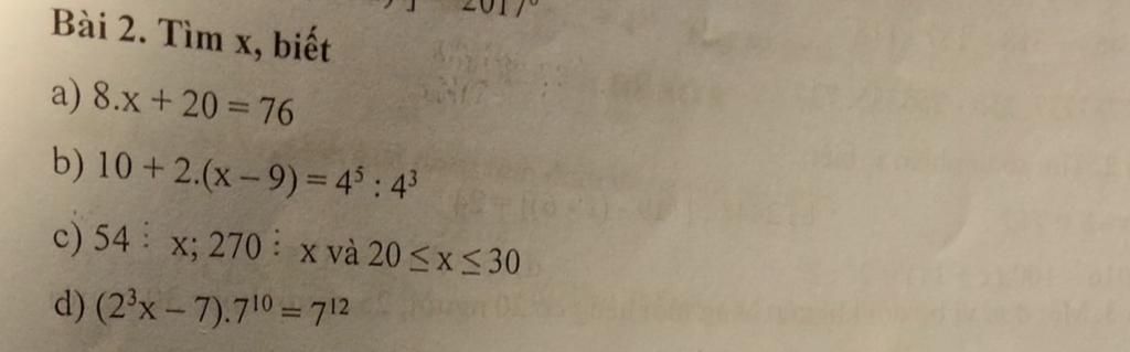 b) `10+2.(x-9)=4^5 : 4^3`