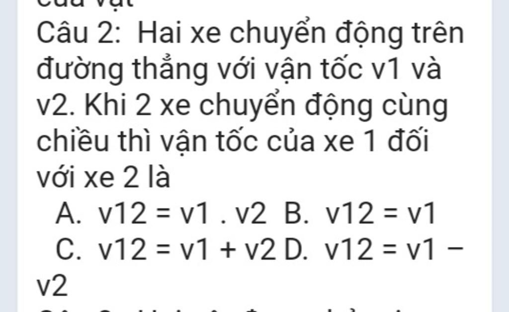 +) Vì hai xe chuyển động cùng chiều, chọn chiều (+) là chiều chuyển động hai xe, chiếu (*) lên chiều (+), có: