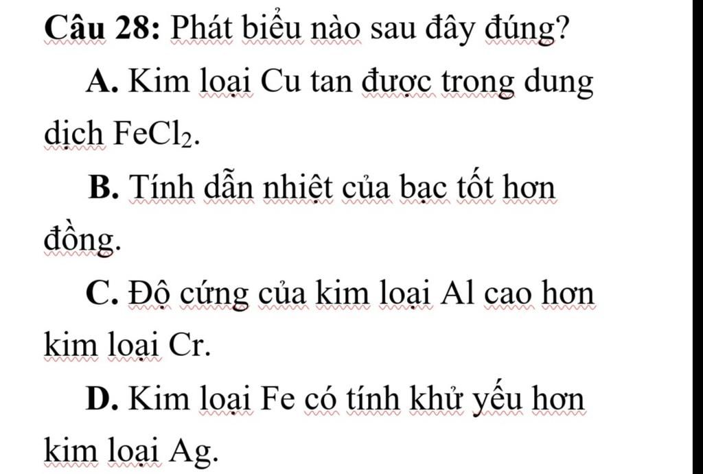 $\text{C) Độ cứng của kim loại Al cao hơn kim loại Cr}$