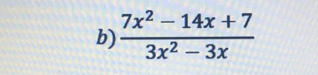 b) 7x^2 - 14x + 7 / 3x^2 - 3x