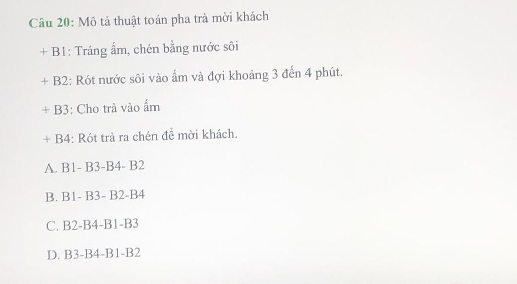 Câu 20:B.B1-B3-B2-B4