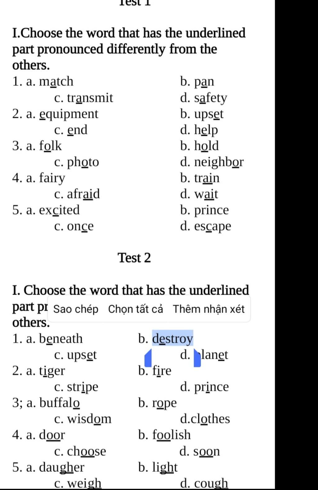 5. D. cough ( âm /f/ ; còn lại làm /câm/)