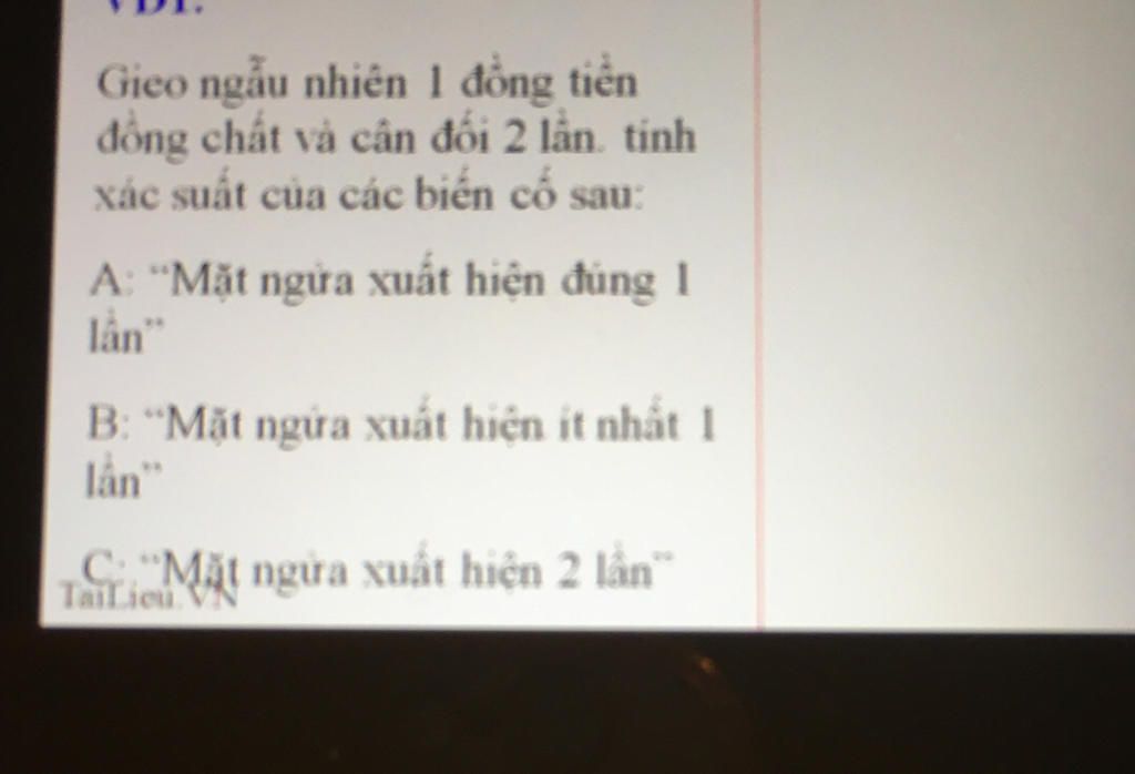 Gieo ngẫu nhiên một đồng tiền đồng chất và cân đối hai lần