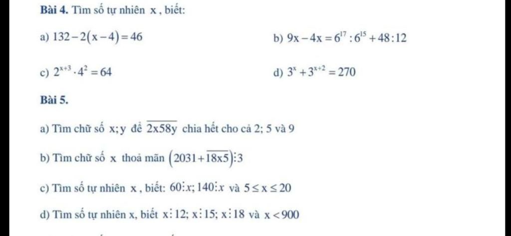 c) Tìm số tự nhiên x, biết: 60:x; 140:x và 5