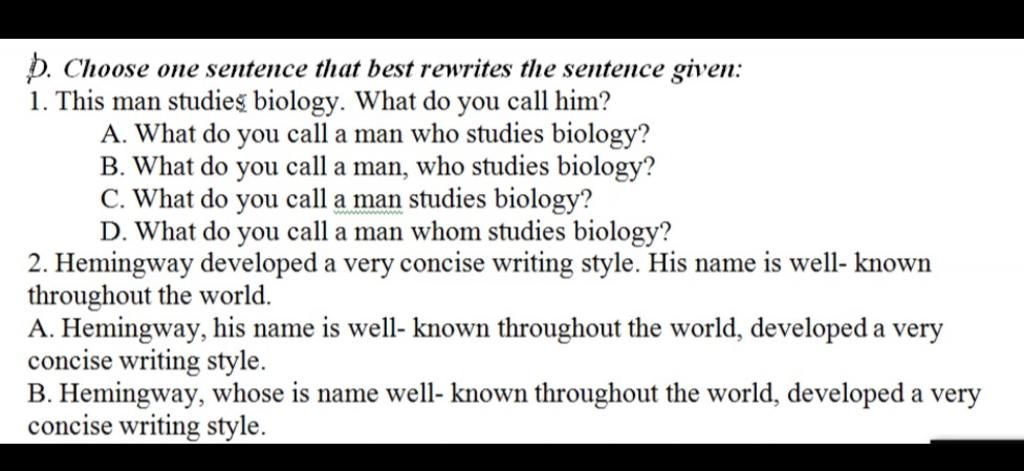 `=` D, Whom được dùng như hình thức bổ túc từ, khi từ đứng trước là chủ ngữ chỉ người `=>` Trong câu này whom phải thành who