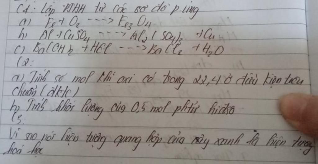 Câu 1) Lập PTHH