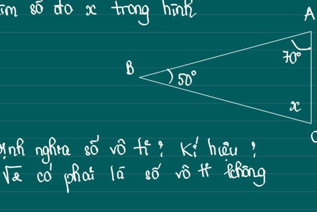 hay $70^\circ$ + $50^\circ$ + x = $180^\circ$