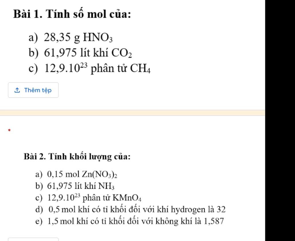 `b)` `n_{NH_3} = V/{24,79} = {61,975}/{24,79}` `= 2,5 (mol)`