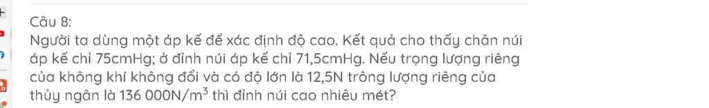 - Áp suất ở độ đỉnh núi là: