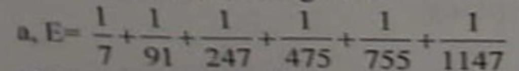 `a, E = 1/7 + 1/91 + 1/247 + 1/475 + 1/775 + 1/1147`