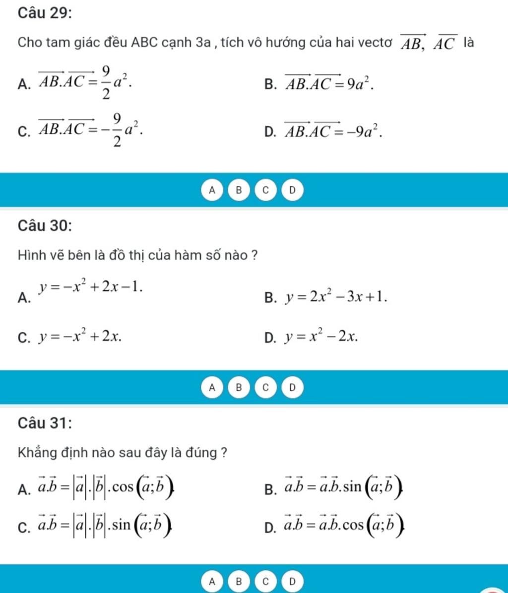 Cho tam giác đều ABC cạnh 3a , tích vô hướng của hai vectơ AB, AC là