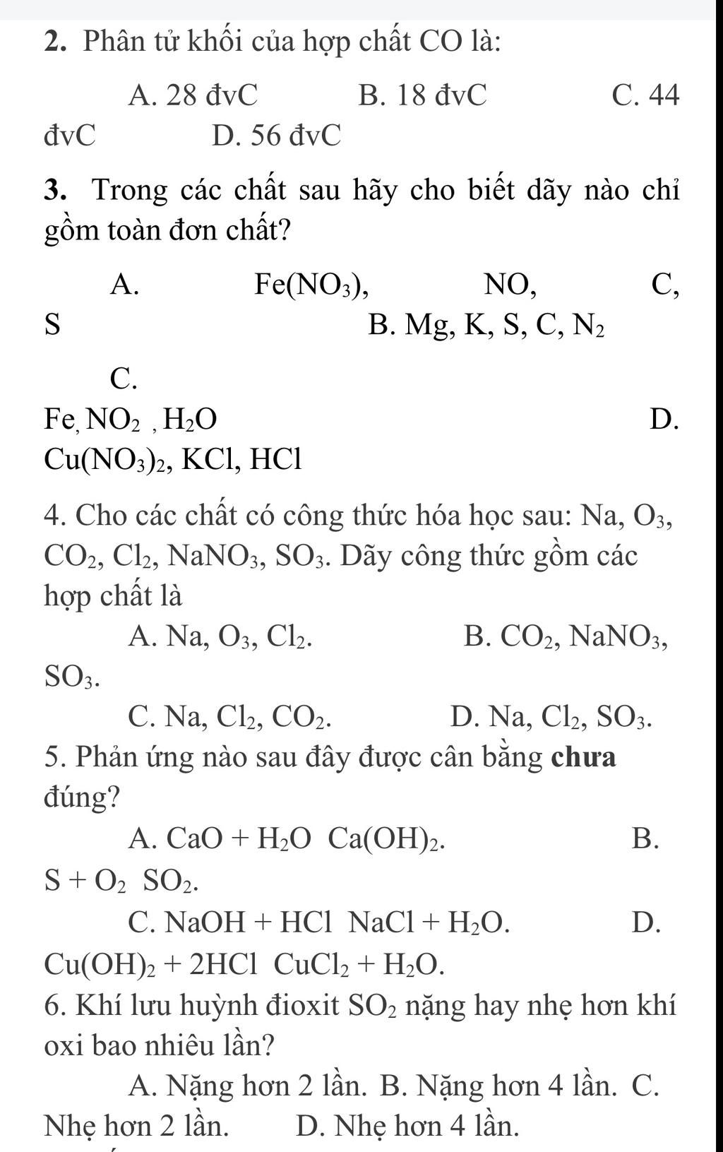 Hợp chất $CO_2,NaNO_3,SO_3$