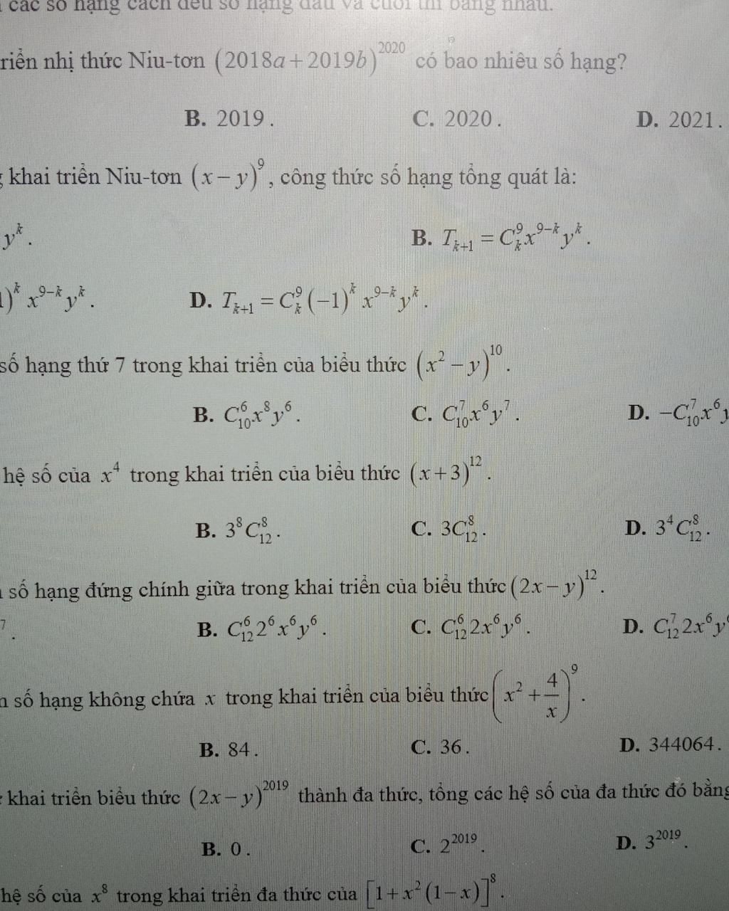 = khai triển Niu-ton (x-y), công thức số hạng tổng quát là: