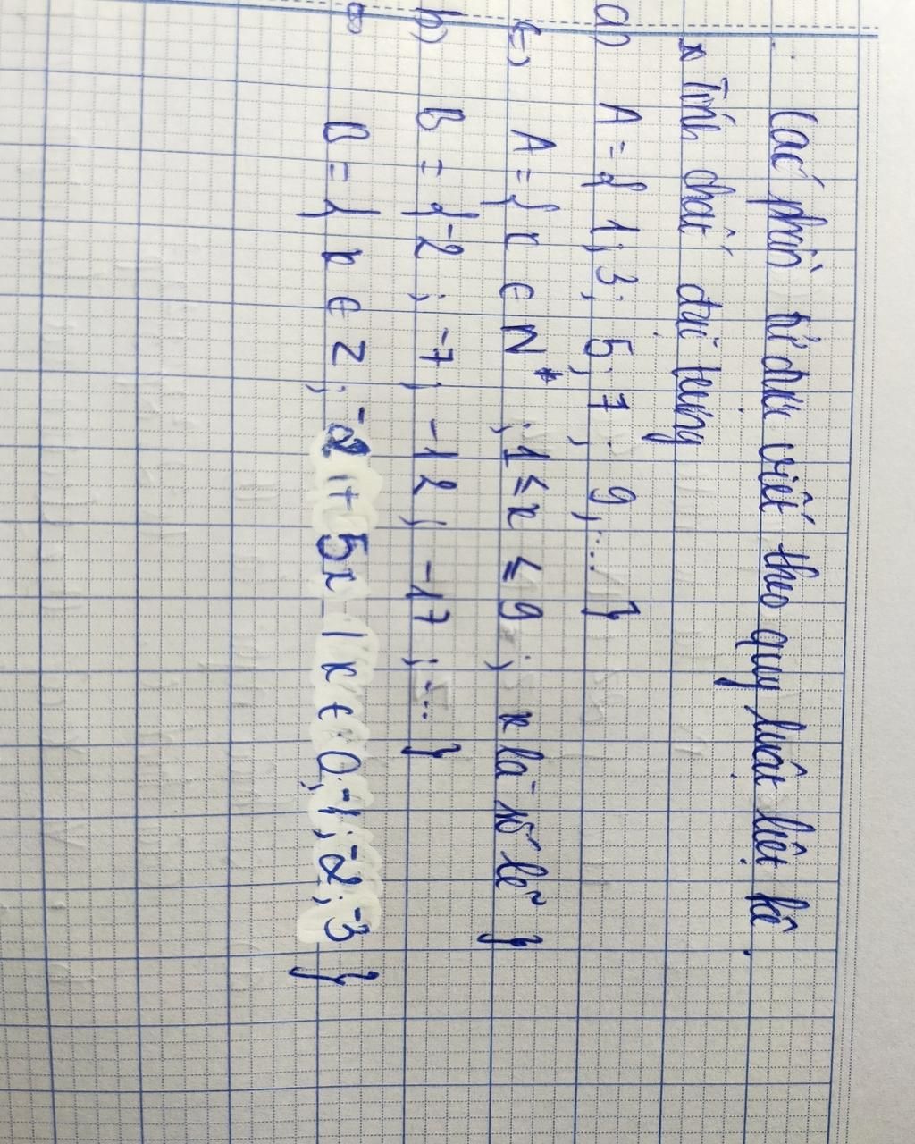 a) Tập hợp A viết theo quy luật dãy số lẻ liên tiếp.